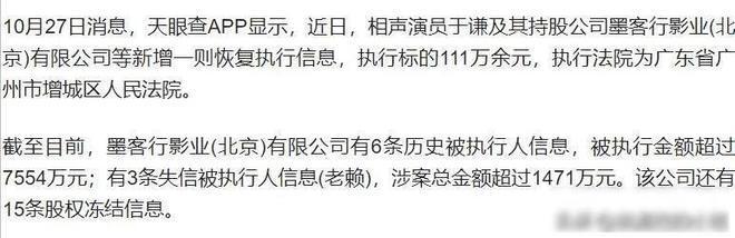 事件背后折射出影视行业的资本幻影。墨客行影业巅峰时估值超5亿,如今却连百万债务都无力清偿,恰似于谦豪宅里那尊看似值钱的木中化石——外表光鲜,内里可能早已中空。这场风波或许不是终点,随着法院对影视行业资本乱象的整治,更多明星股东的财务谜题或将浮出水面。