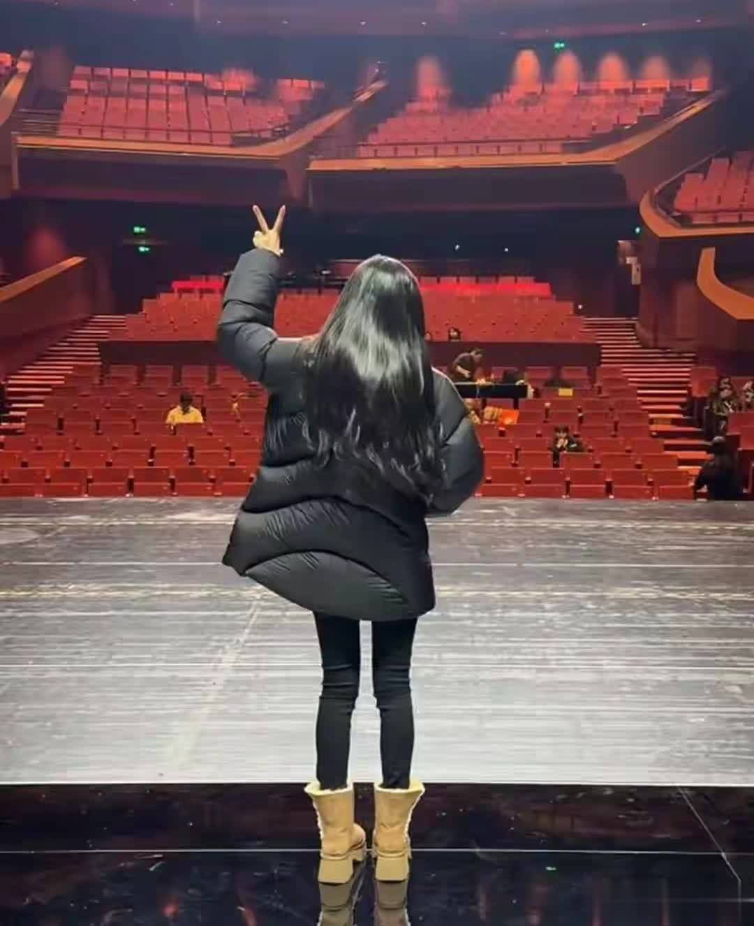 实际上,170cm身�斤是怎样的概念呢?对于普通人而言,这个身高体重�-120斤都算苗条了,而她却瘦成了“行走的竹竿”。之前晒出的排练照中,量身定制的旗袍在她腰上竟空出一大块,工作人员得用镊子别着才能合身;穿上紧身裤时,双腿细得格外刺眼,与去年抱着菜篮子时的饱满模样相比,简直判若两人。